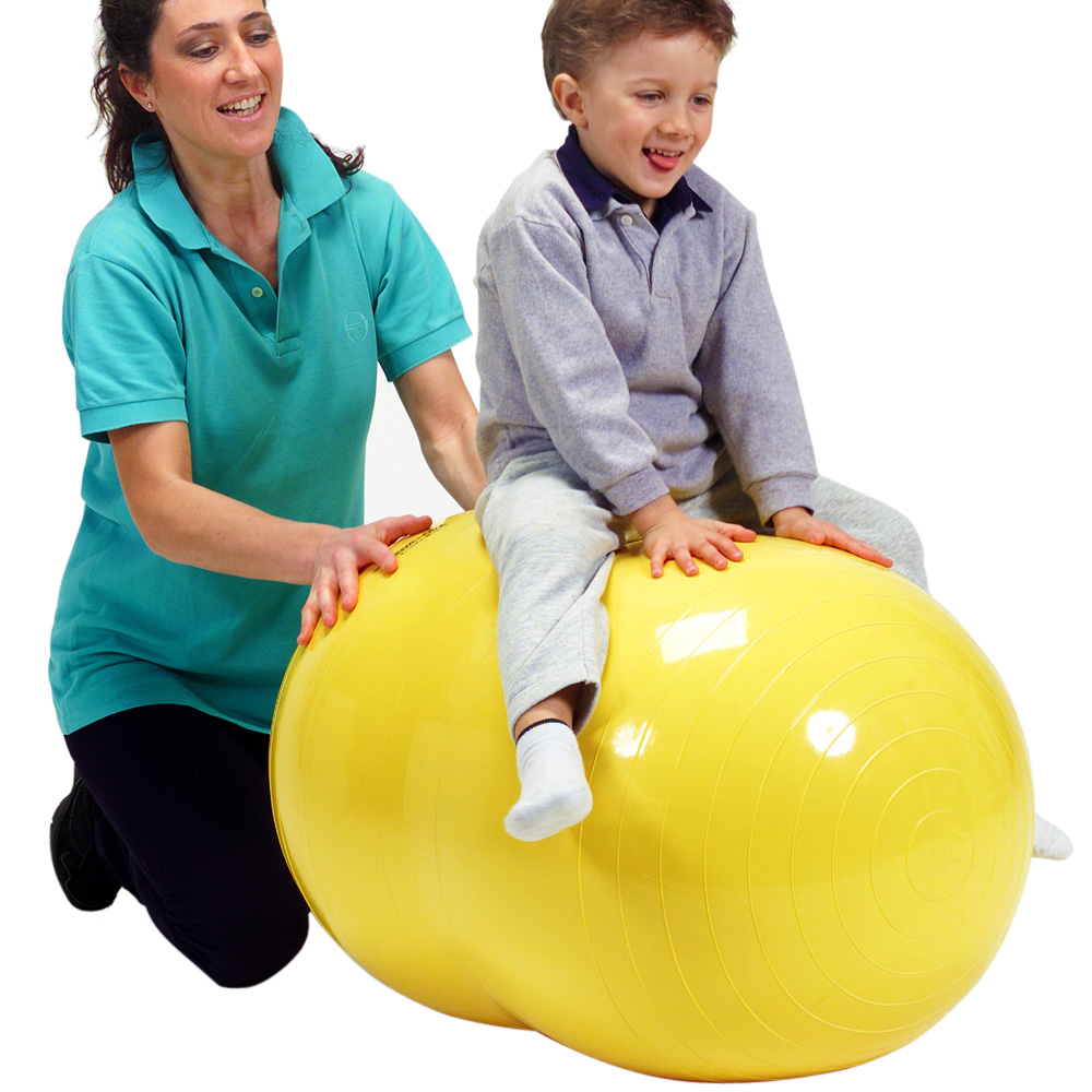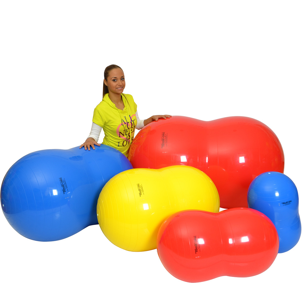 ピーナッツのような形で安定感があり、球体のように全方向には転がらないため、初心者、お子様や高齢者におすすめです。フィジオロールは介護や医療現場で幅広く使用されています。くびれの部分にまたがり安定よく座ることからはじめましょう。少し左右にゆらゆら揺らして感覚がつかめたら、バウンドやストレッチなど工夫してみましょう。全身のバランス感覚、調整力を養うことができます。