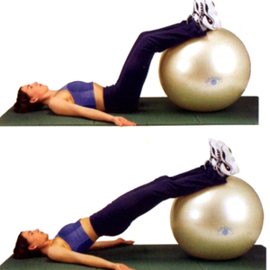 ボールに足を乗せ、ボールの転がりを利用してお尻を上げます。お尻を引き締める効果も期待できます。
